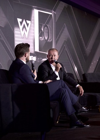 W kulminacyjnym momencie wieczoru Andrzej Wiśniowski (na zdjęciu po lewej) raz jeszcze przybliżył historię swojego przedsiębiorstwa, która rozpoczęła się w garażu.