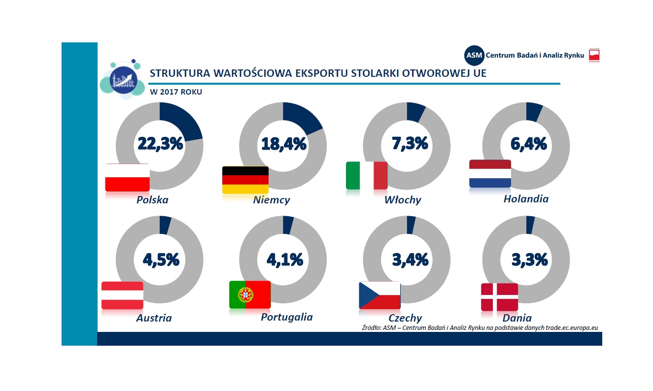 Jak widać sytuacja nie wygląda dobrze, chociaż polscy producenci są największymi eksporterami w Europie, jak widać na załączonym wykresie. Polscy producenci stolarki drewnianej teoretycznie nie mają się czym martwić, ale na pewno będą mieli zagwozdkę do zgryzienia. Jedno jest pewne, w rzeczywistości nie jest tak źle jak mówią jedni, ani tak dobrze jak mówią pozostali. Złote czasy dla producentów stolarki drewnianej już dawno minęły, a konkurencja na rynku europejskim zaostrza się i z pewnością będą nowe wstrzymania produkcji i upadłości. Jedynym pocieszeniem może być fakt, że rośnie sprzedaż stolarki drew-alu, ale ciagle jest to bardzo mały poziom sprzedaży w stosunku do całości rynku okien i drzwi. Jest to też bardzo ekskluzywny i drogi produkt. Poczekamy, zobaczymy, ale z pewnością czekają nas ciekawe miesiące i lata w branży okien, drzwi, bram czy rolet w globalnym i bardzo konkurencyjnym świecie.