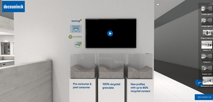 Tymczasem pandemia COVID-19 zmusiła całą branżę do zmiany planów. Deceuninck wykorzystał alternatywną drogę do zaprezentowania swoich premier w równie atrakcyjny i – co najważniejsze – bezpieczny sposób, zapraszając klientów za pomocą wirtualnej rzeczywistości do spaceru po swoim stoisku i szczegółowego zapoznania się z szerokim portfolio produktów marki.