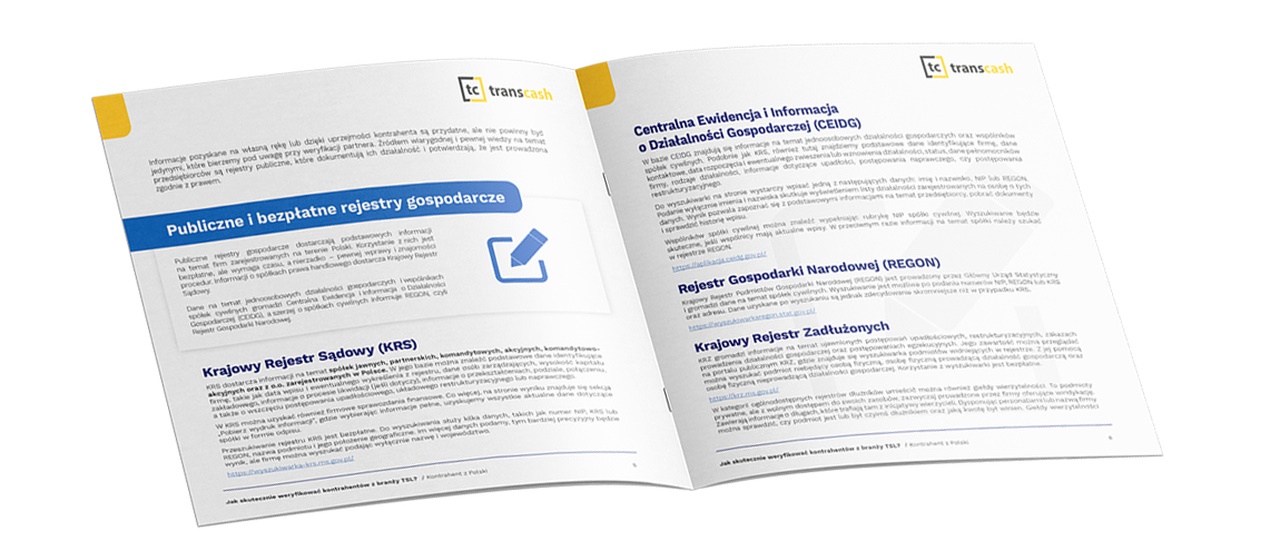 Transcash już w 2023 roku przeprowadził badanie dotyczące weryfikacji kontrahentów zagranicznych przez firmy z sektora TSL. Ponad 70% ankietowanych przyznało, że to robi, jednak głównym źródłem wiedzy okazały się opinie i rekomendacje. Nieoficjalne źródła to jednak za mało, by mówić o rzetelnej weryfikacji. Z pomocą naszego cyklu chcemy podpowiedzieć firmom z branży TSL, gdzie i w jaki sposób poszukiwać rzetelnych i sprawdzonych informacji o nowych kontrahentach. W naszym cyklu przytaczamy o kategoryzujemy źródła i metody, uwzględniając specyfikę branży w danym kraju - mówi Jakub Gwiazdowski, Head of Partnership & Relations w Transcash.eu.