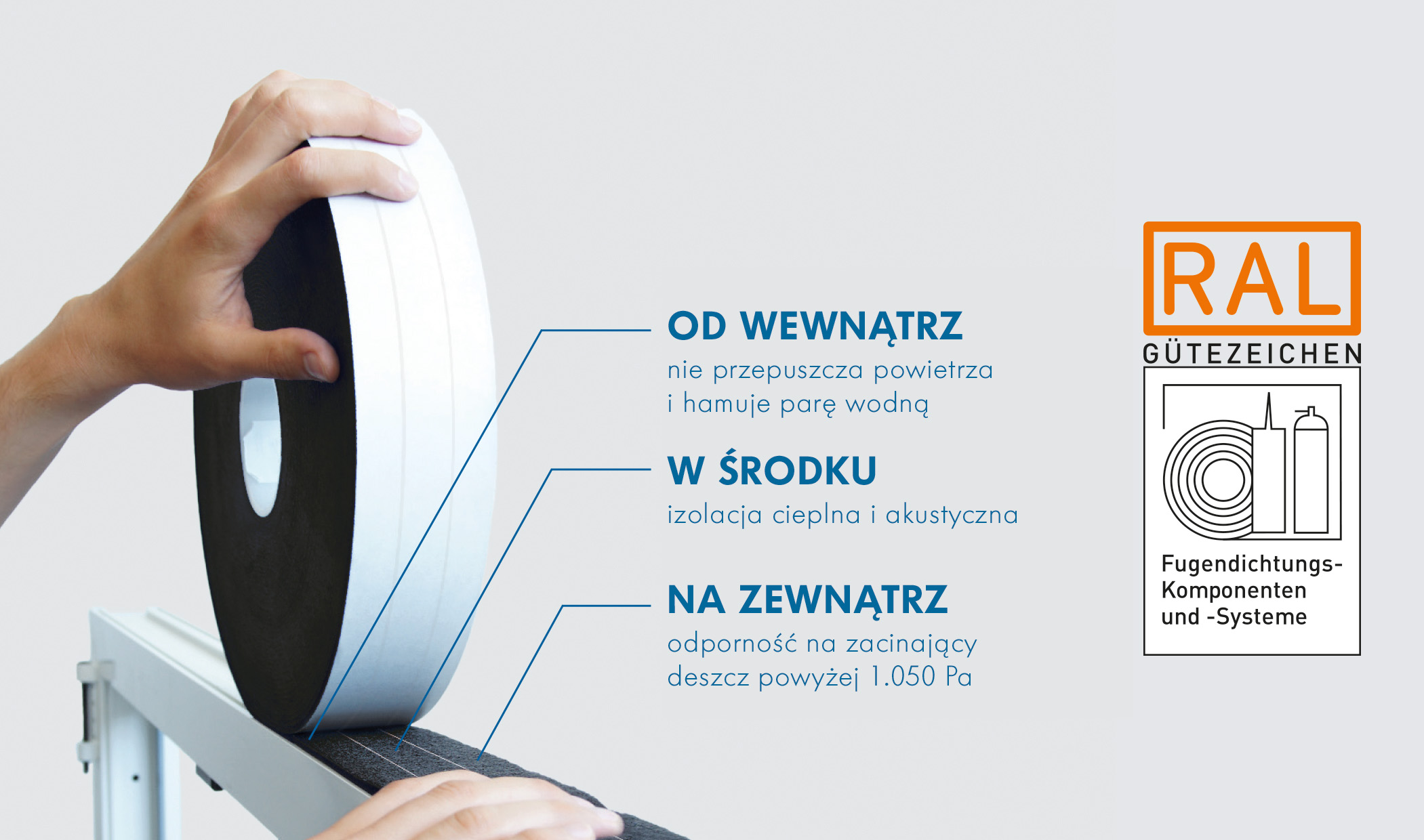 ISO-BLOCO HYBRATEC otrzymał Znak Jakości RAL "Komponenty i systemy uszczelnień fug" Towarzystwa Gütegemeinschaft Gebäudeabdichtungssysteme e.V. Wielofunkcyjna taśma opracowana przez ISO-Chemie do szczelnego powietrznie i odpornego na zacinający deszcz uszczelniania połączeń i fug ruchomych w budownictwie przekonała wszystkich swoimi szczególnymi właściwościami.